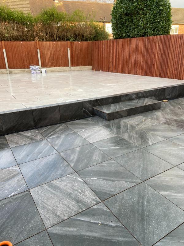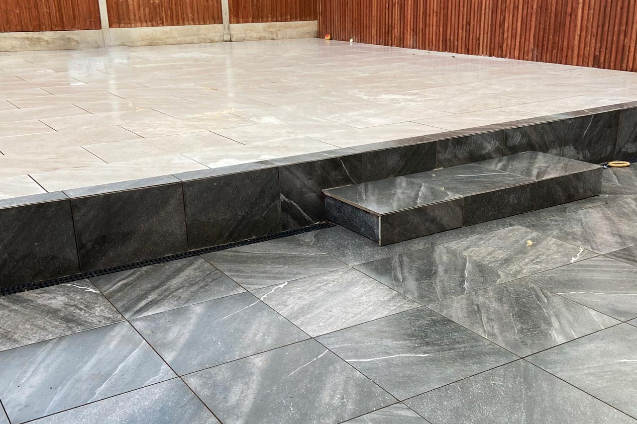 Porcelain paving offers a contemporary look with exceptional strength and low maintenance. Perfect for modern gardens, its clean lines and consistent finish deliver a refined, architectural feel that complements both traditional and contemporary homes.